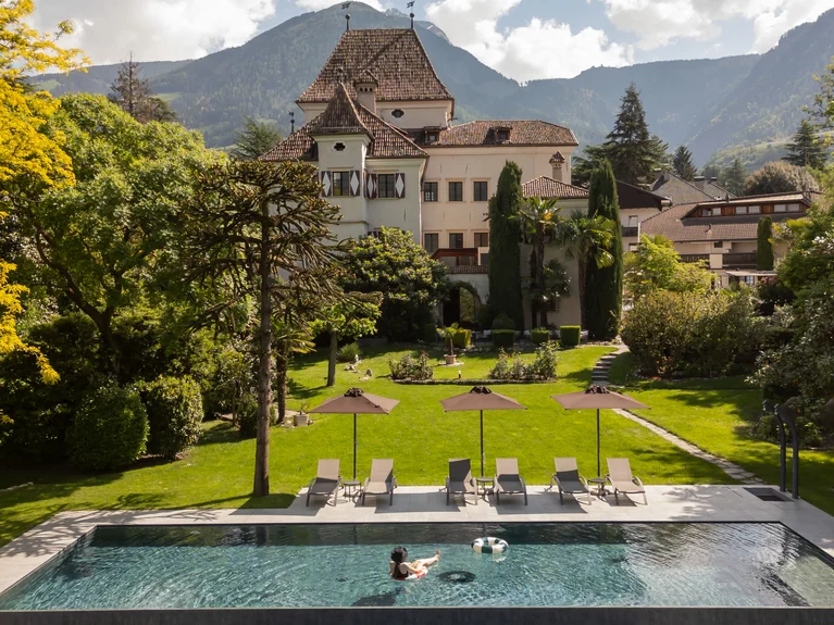 In diesem geschichtsträchtigen Gemäuer erwarten Sie eine preisgekrönte Cuisine, ein großzügiger Spa mit Außen- und Innenpool – und die Ruhe eines blühenden Schlossgartens im Herzen Merans.